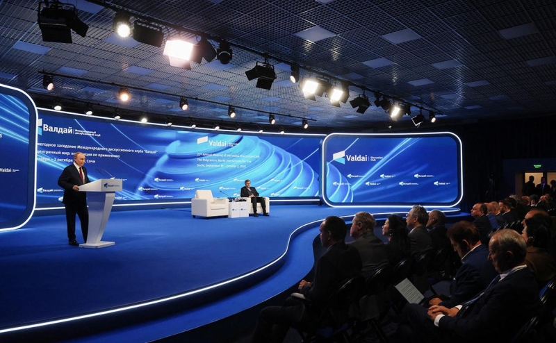Форум «Валдай» в 2025 году проходит в Сочи под темой— «Полицентричный мир: инструкция по применению». Первым местом его проведения в 2004 году стало озеро Валдай, оттуда и было взято название. После этого он проходил на теплоходе из Москвы в Тверь, в Ханты-Мансийске, Москве, Сочи, Петербурге, Томске и других местах.